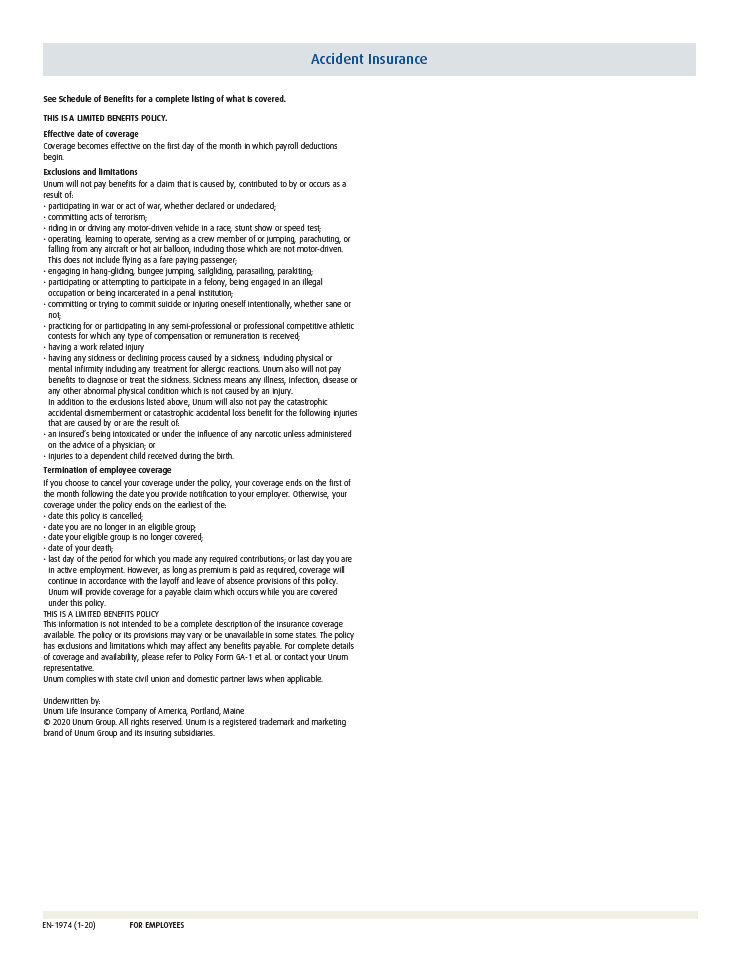 Voluntary Accident Insurance by UNUM Slide 1 Slide 1 (current slide) Slide 2 Slide 2 (current slide) Slide 3 Slide 3 (current slide)